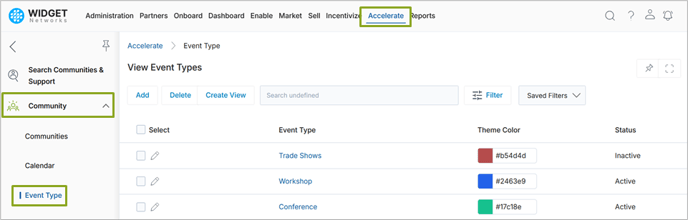 - Click on Community > Event Type in the left menu bar.