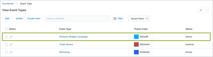 - Add a new Event Type by providing a name, selecting a color, and marking it as Active and save the changes.