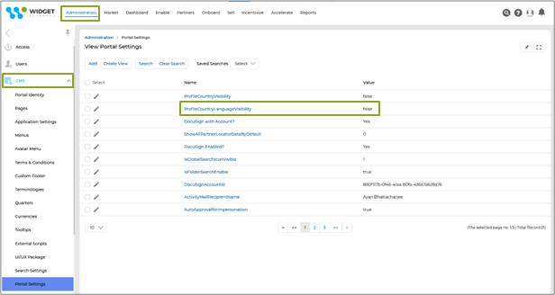 - This Portal Setting can be reached by navigating Administration > CMS > Portal Settings. This takes us to the View Portal Settings page, which lists all the Portal Settings.