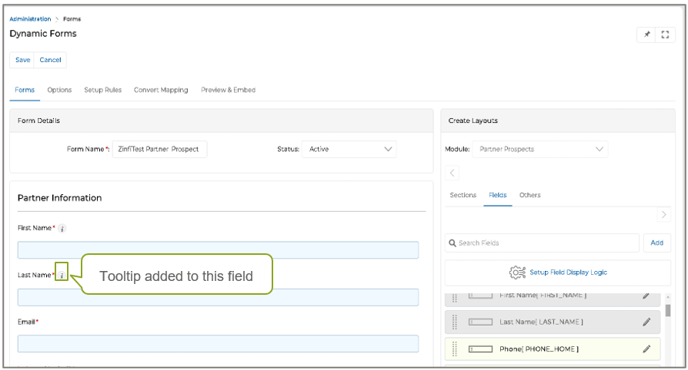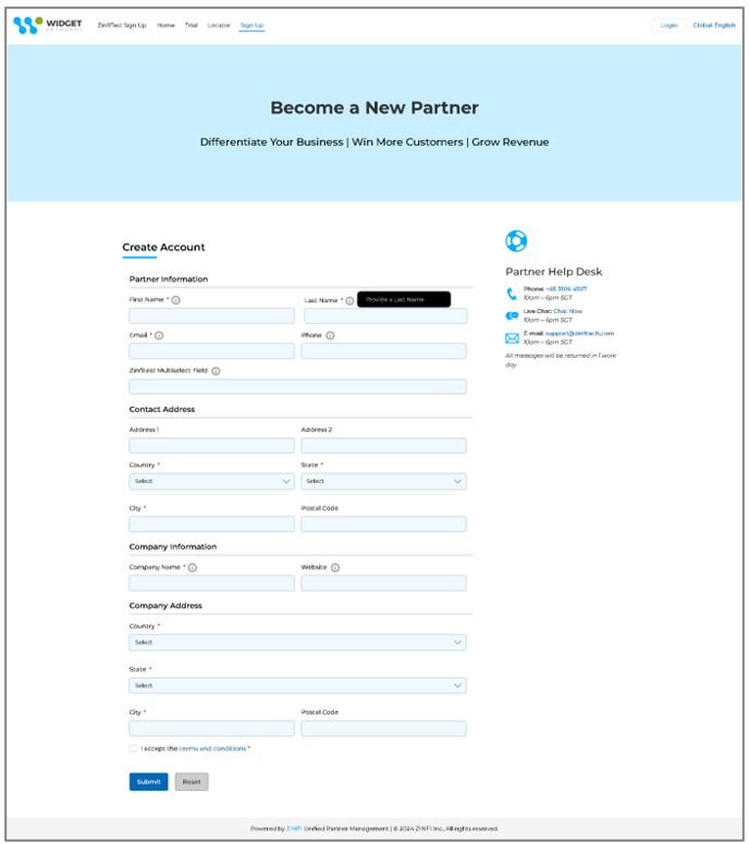 - Configurable Tooltips in Dynamic Forms for Pre-Log-in Pages: Tooltips provide contextual guidance for partner prospects during the sign-up process on pre-login pages - simplifying the onboarding process.