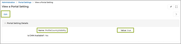 Enable of the ‘Profile Country Visibility’ Portal Setting