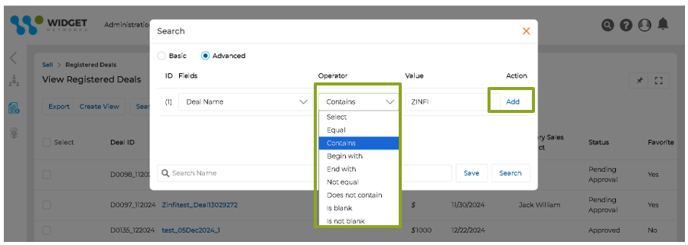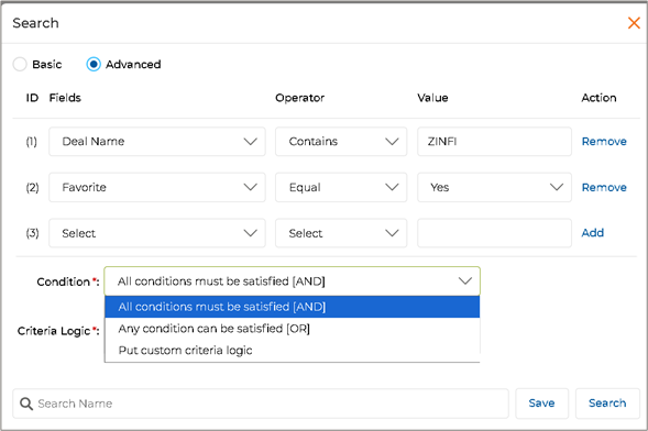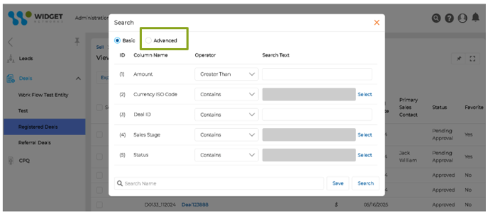 - Advanced Search for List Pages: The Advanced Search engine enhances the partner journey during the Sell phase by efficiently providing partners and admins with powerful tools to filter records using flexible search criteria. Users can combine multiple fields, operators, and customizable logic, enabling precise data retrieval. The enhanced search functionality allows for defining complex queries with conditional logic, utilizing AND/OR operators to refine searches further. Users can define conditions for tailored results after selecting the necessary fields, specifying operators, and entering corresponding values. Once the query is set, clicking "Search" executes it, delivering relevant data quickly. Additionally, users can save their searches under custom Search Names for future reference, streamlining repetitive tasks and improving operational efficiency.