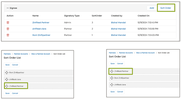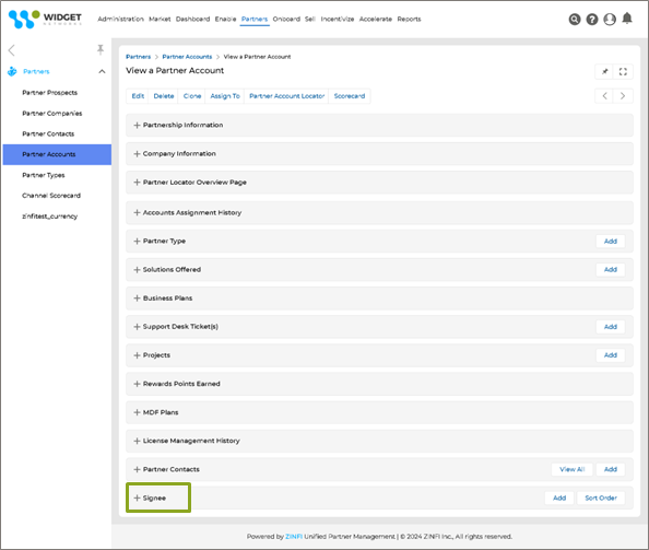 - Multi-signee Contract Workflows for DocuSign Contracts: ZINFI enhances its Partner Contracts Management system with the Multi-party Contract Signee Setup. Admins can now configure and define the order of an unlimited number of signatories, both from the admin and partner sides, directly within the "Signee" list under the Partner Account. This ensures flexibility in accommodating complex signing workflows while maintaining precision and control. Contract templates can also be assigned at the Partner Account level, generating a unified contract for all specified signatories. Depending on business requirements, contract templates can be assigned during partner onboarding at the account or group level. Portal settings allow flexibility in assigning templates to Partner Accounts or Groups, ensuring that onboarding aligns with multi-ordered contractual requirements.