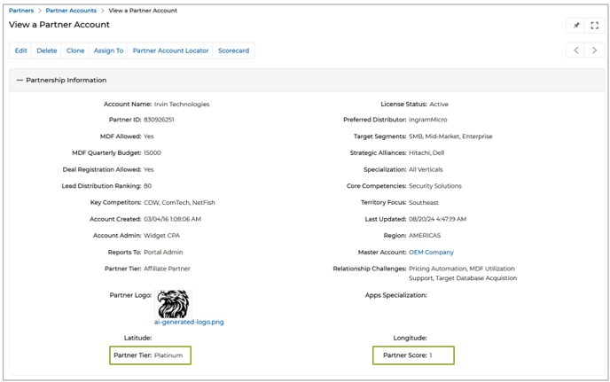 - Automatic Partner Tier Assignment Based on Partner Score: This feature simplifies partner management by automatically assigning a partner tier based on the partner’s score. Administrators can configure this functionality in the Partner Tier Attributes settings within Access Management, defining specific rules for tier assignments such as Platinum, Gold, or Silver. When the Partner Score in the account profile is updated, the system evaluates it against the predefined rules and assigns the appropriate tier in real-time. This automation minimizes administrative effort, ensures accurate and consistent tier classifications, and keeps partner records up to date without manual intervention.