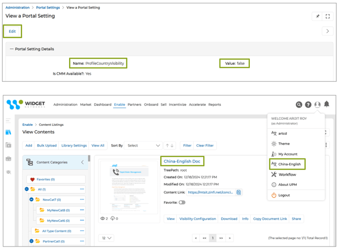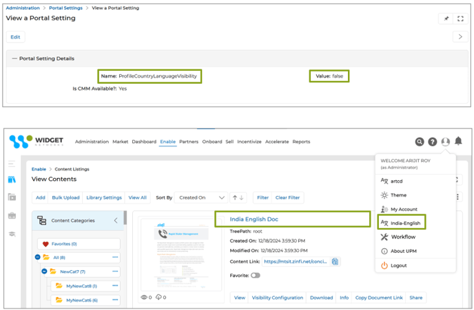 - Disabling this Portal Setting allows users to view content in the Content Library based on the country selected on the Country-Language selection page.