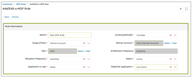 - Incentive Rule Engine: Administrators can configure and manage Market Development Fund (MDF) Incentives, Commission Rules, and Rebate Rules through the Incentive Rule Engine. They can define Incentive rules by specifying entitlement frequency, sales targets, payout amounts, and eligibility criteria. applicable year, allocation frequency, and incentive application criteria (Deal Closure or Invoice Generation). Once configured, Incentive rules can be defined by setting minimum and maximum sales targets, payout amounts, and entitlement types (Fixed or Percentage) to ensure accurate incentive distribution.