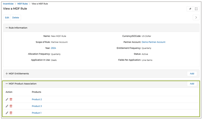 - Configuring Incentives Enablement for Partners: By defining incentive types (e.g., MDF, Commissions, Rebates) at the product level, organizations can better manage partner incentives, increasing motivation to prioritize specific products or services. This feature facilitates fair, transparent, and goal-aligned incentivization strategies for partners.